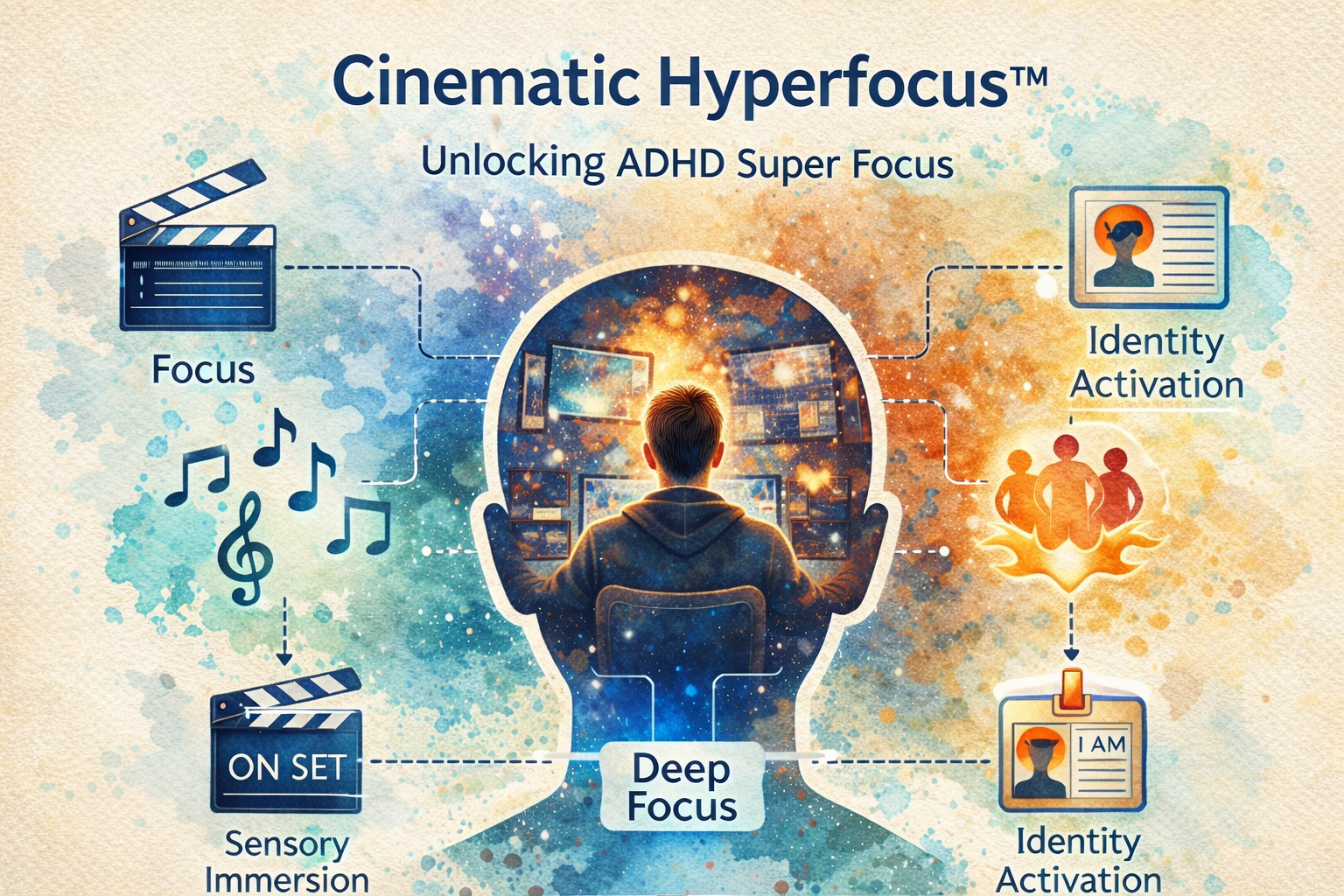 That observation became the beginning of a discovery that would eventually evolve into what I now call Cinematic Hyperfocus™—a method that doesn’t fight the ADHD brain, but speaks its language fluently.